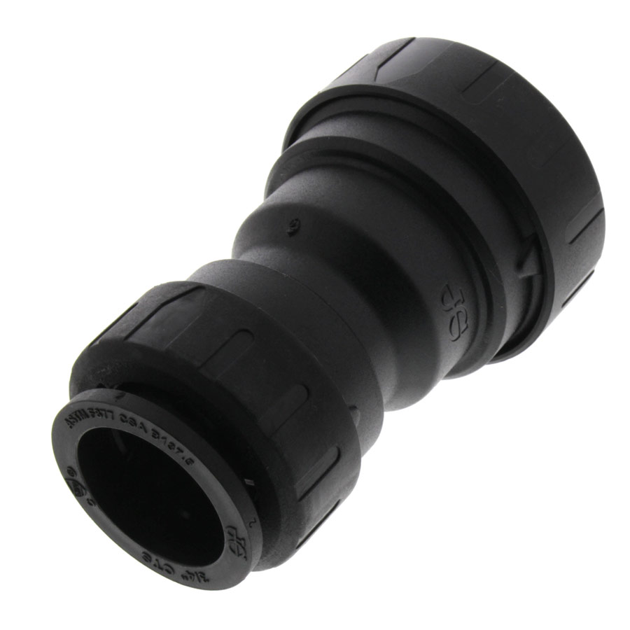 1″ x 3/4″ John Guest CTS Connector (OD) to Reduce Union (Black Polypropylene) Features: